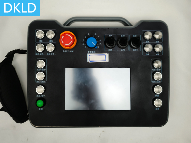 • 3个双轴摇杆+8个按键+1个两档旋转开关+1个5档旋转开关7寸触摸屏平板型工业无线遥控器